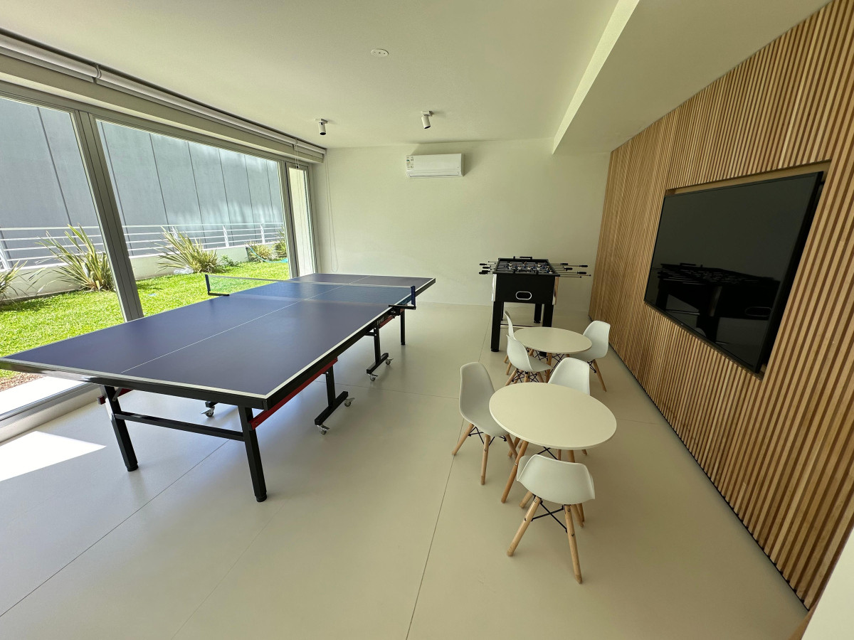 1 dormitorio, living comedor con cocina integrada, balcón, garage y variados amenities.